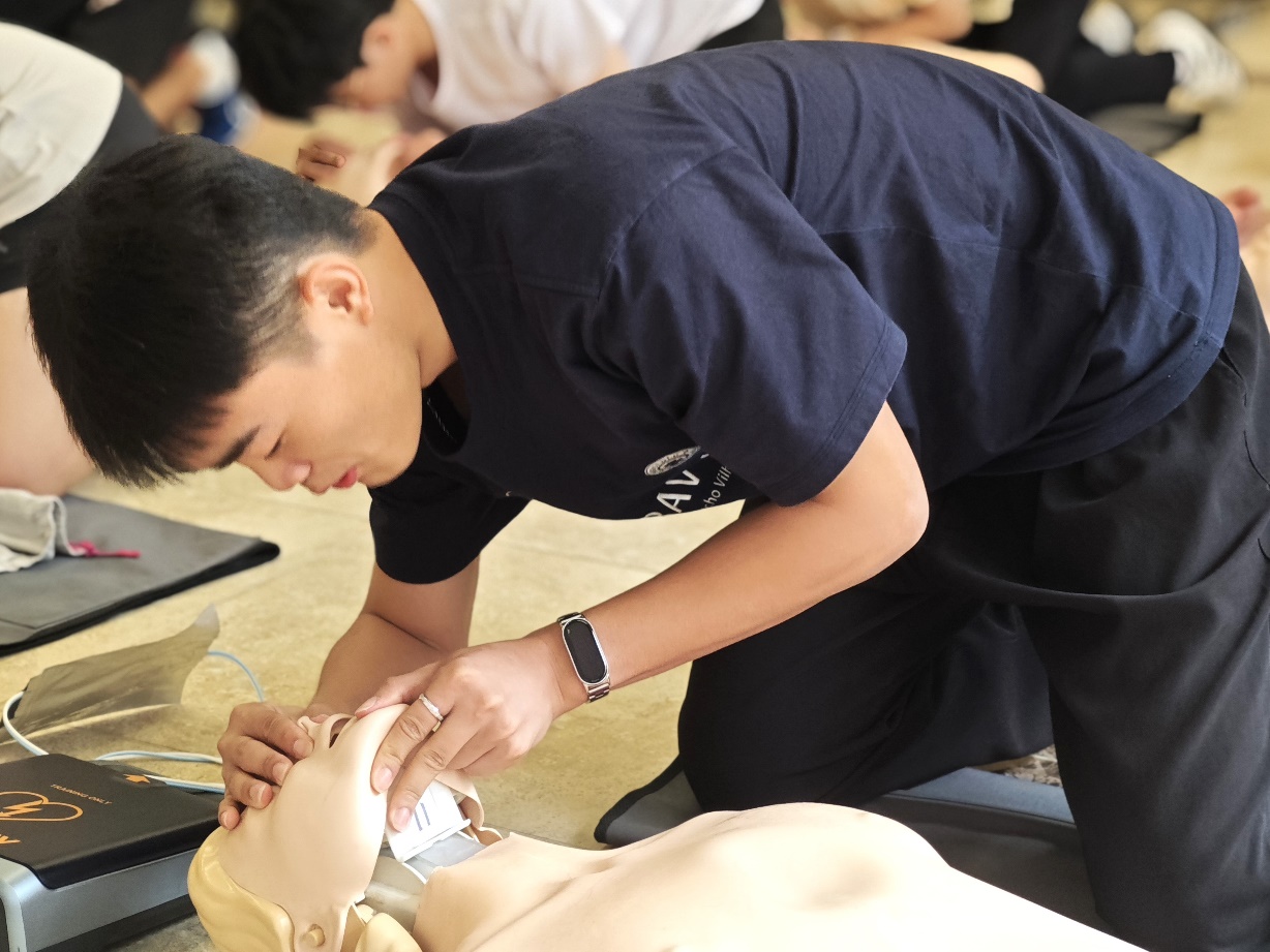 本次培训严格遵循中国红十字会救护员培训大纲,采用“理论授课+实操演练+严格考核”的模式,确保学员们学以致用。在系统学习心肺复苏(CPR)、自动体外除颤器(AED)使用及创伤救护等核心理论后,学员们立即投入实操练习中。